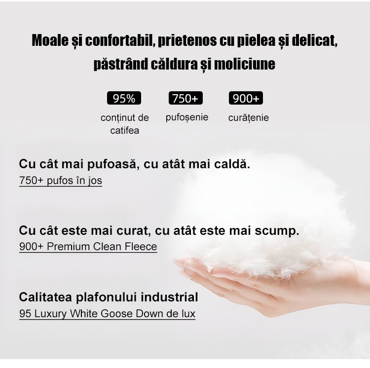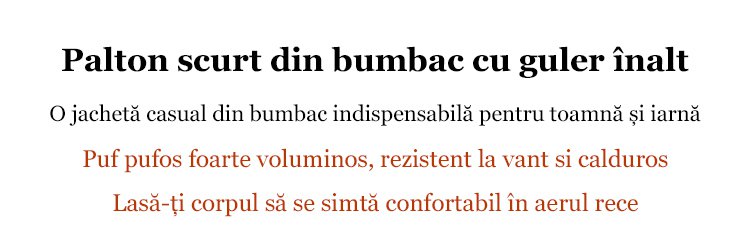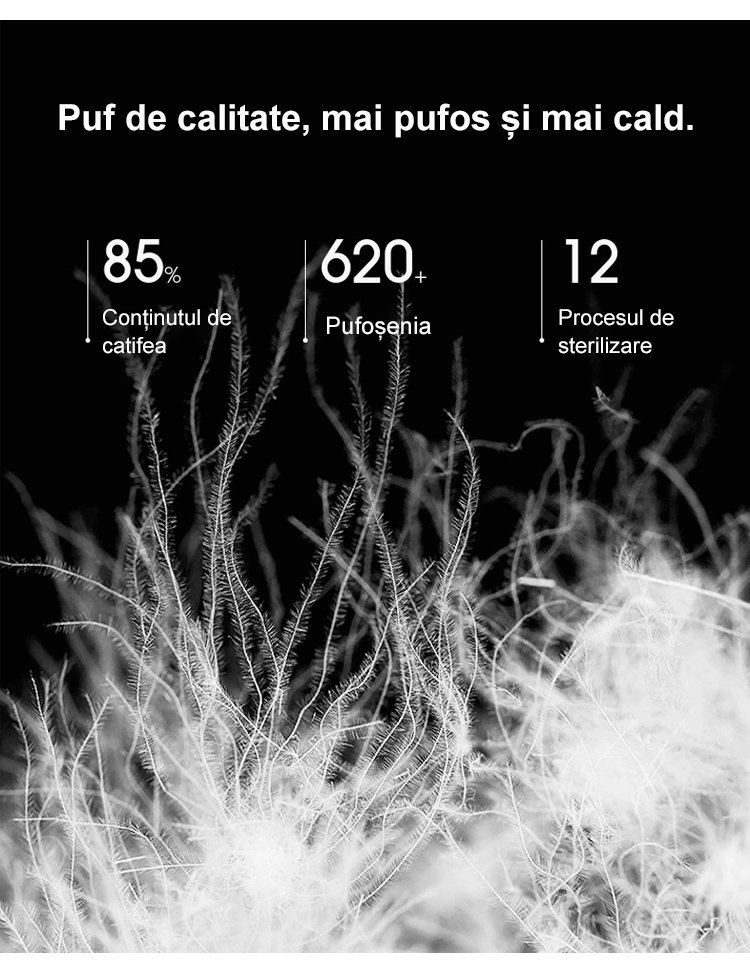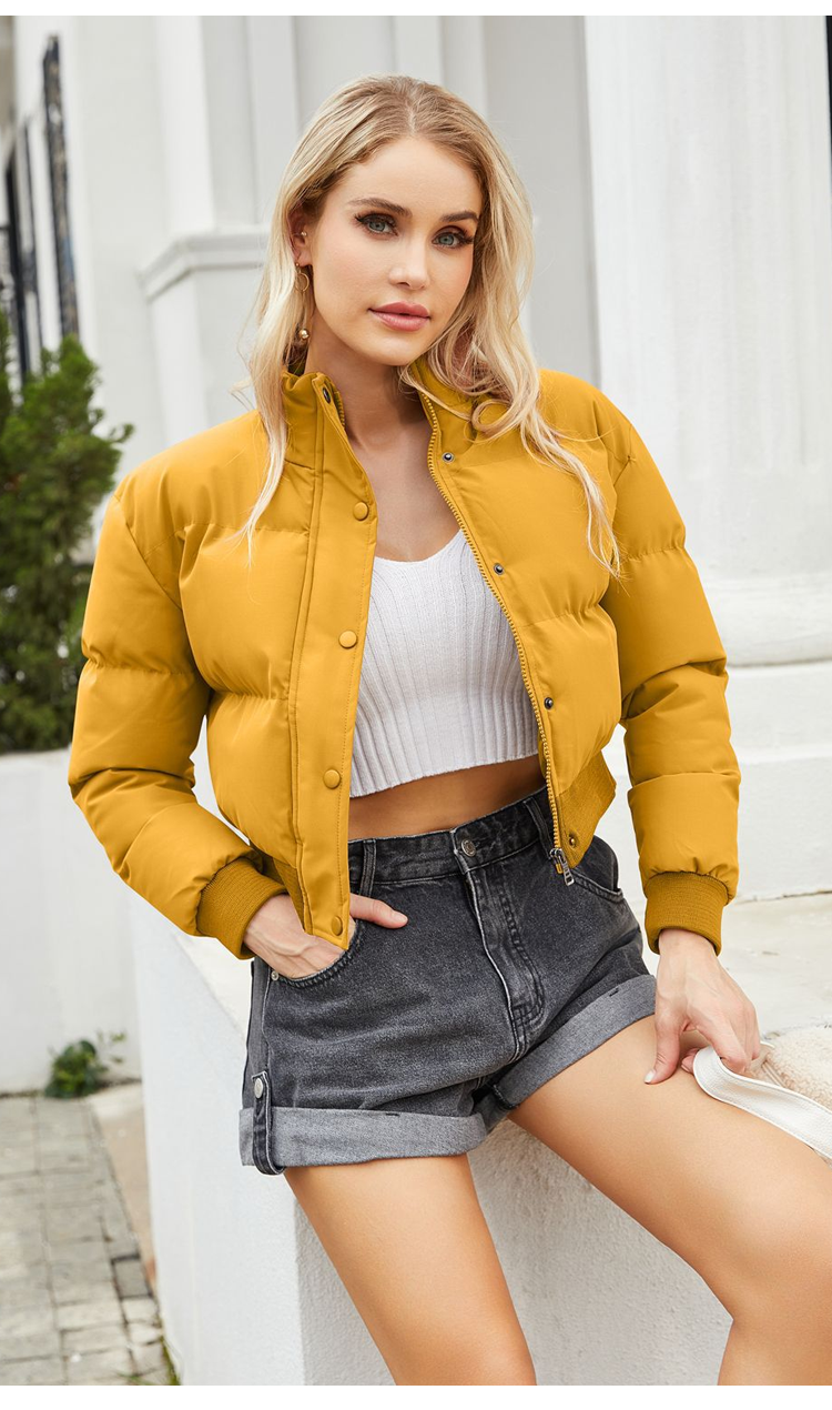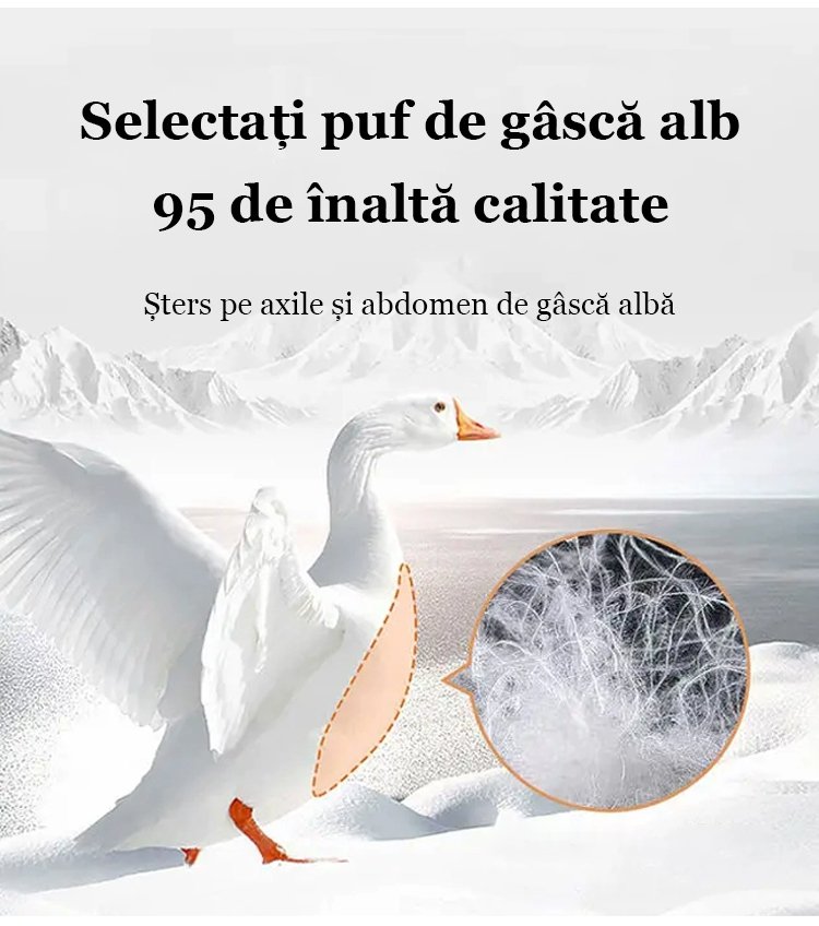 Palton scurt de puf alb de gâscă cu guler înalt